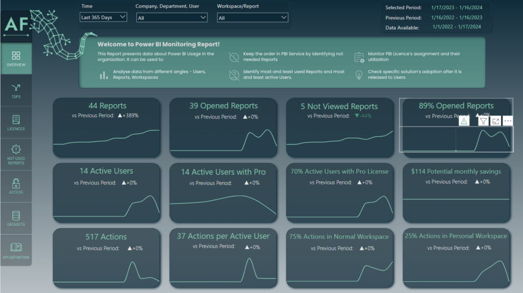 Gain a tool to measure the adoption of PBI reports and help manage governance