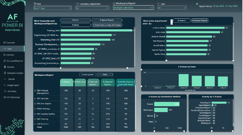 Easily define the top users across all workspaces or the most frequently consulted reports.